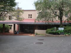さらに尾根道を進む。途中で「自然観察センター→」の道標にしたがって、右に分岐する道に入る。尾根道を直進すると鎌倉天園に通じるそうである。杉とアオキの斜面を横切り、横浜霊園前バス停に降りる階段道を左に分け、右の階段をちょっと登って下ると自然観察センターに帰着。ベンチで休憩中のS&Sと合流する。
