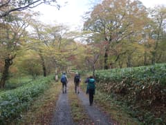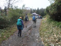 桐生を朝6時にTさんの車に乗り合わせて出発。富士見下に8時過ぎに到着し、ゲート前に駐車する。他の車は7台程。予想より多いのは3連休の初日だからか。駐車場の一部は、大木の太い枝が落下する恐れがあるため、立入禁止となっている。昨日は11月並みの寒さ(桐生で最高気温が13.8℃)となり、今日も寒そうなので、冬用の厚手の長袖シャツとトレックパンツという出で立ちで歩き出す。天気は曇りで、空気がヒンヤリと冷たい。
