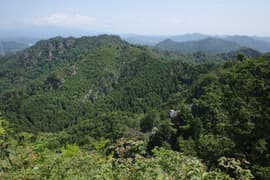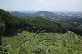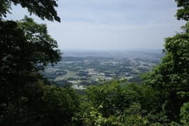 樹林に覆われたなだらかな稜線を辿ると古賀志山の頂上に着く。展望は乏しく、南麓の一部が見えるだけだが、たくさんベンチがあって休憩適地。外国の方のグループも含めて大勢のハイカーさんが休憩中。まだ10時と早いが昼食休憩にする。ベンチに腰掛けてお湯を沸かし、カップヌードル味噌を食べる。陽射しが強く、5月末とは思えない暑さになってきた(この日の鹿沼の最高気温は26.6℃)。