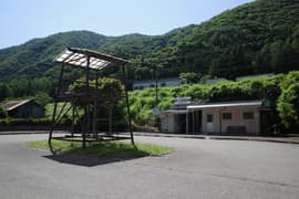 見通沢を渡ると、程なく広く開けて数軒の建屋のある所に着き、芝草山の登路となる尾根が間近に見える。「山宿観峰 太郎温泉」の看板があり、右手にペンション風の建物があるが、草木に深く覆われ、ひと気は全くなく、廃業して久しい様子。そういえば、太郎温泉の名前は昔に聞いた気がする。車で来た場合はここの空き地に駐車できる。