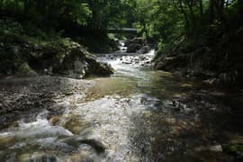 あとは車道を歩いて中三依温泉駅へ。途中、見通沢を渡る辺りで、渓流沿いに「白龍渓」の標識を見つける。行きには見落としていた。大した渓谷ではないが、岩を嚙かみ蛇行する清冽で水量豊かな流れを見ていると涼し気で良い。