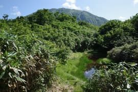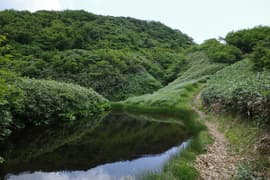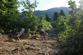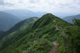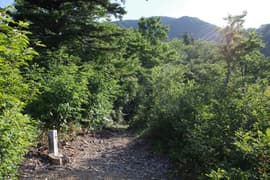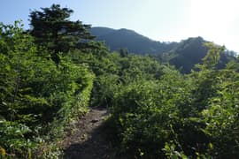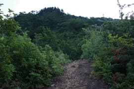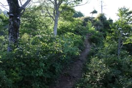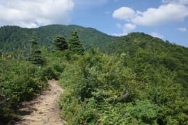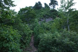 池と草原巡りののちに緩く登って、1548m標高点の頂上付近に六合がある。一旦、小さく下り、小天上と呼ばれる円錐形の小鋭鋒に向かって低木帯の切り開き道を急登する。
