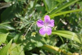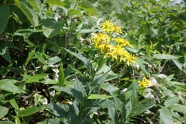 九合から笹原の斜面を滑らないように足元に気をつけて急降下する。ここにも数は多くないが、いくつかの種類の花が咲いている。