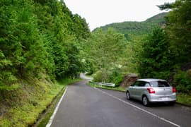 東滝上駐車場に戻ると、駐車が1台増えていて、水着から着替え中の若者が2人。話を聞くと沢を下って、東滝まで行ったらしい。さすがに落ち口までだろうが、チャレンジャーだなあ。彼らが帰ったのと入れ替わりに別の若者5人グループの車も来て、歩道の方に歩いて行ったが、観光の格好なのでどこまで行けたかな。いずれにしても、程野の滝の探訪は軽いハイキングではなく、完全に山歩きと考えた方が良い。