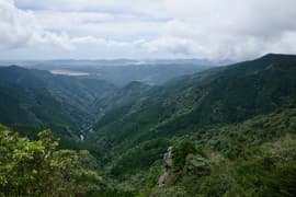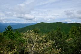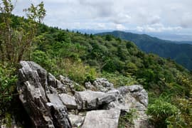 賽の河原から広くなだらかな尾根に取り付いて登る。「風の谷」というおすすめポイントがあり、岩場の上から周囲の眺めが広がる。その名の通り、谷から吹き上がって来る風が気持ち良い。