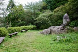 やがて、「工石山県民の森」の石碑やベンチのある広場に下り着く。この直ぐ先が杖塚の三叉路だ。この辺から三辻山への登山道が分岐しているはずだが、何故か見落とした。三辻山にも登る予定だったが、工石山だけで十分に満足したので、まっいいか。そのまま下って、駐車地点に戻る。