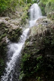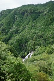 程野の滝は、東滝、西滝、権現滝、大樽の滝の4つの滝の総称で、落差は50〜100m。東西約4kmの断層崖にほぼ等間隔に滝が架かる点が全国的にも珍しく、興味を惹かれる。