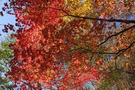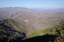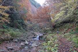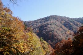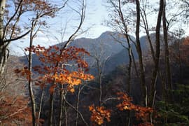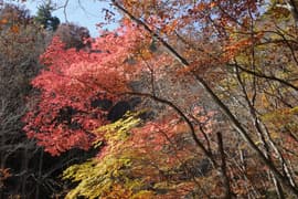 まだ15時だが晩秋の太陽は既に傾き始めて、日蔭の谷間はヒンヤリとした空気に包まれる。数台の車を残すのみでガランとした登山口駐車場に帰り着く。荒海山は、行程は6時間強でそう長くはないが山は険しく、なかなか登り応えがあった。天気にも恵まれ、見頃の紅葉と頂上からの大展望が楽しめて、大満足である。