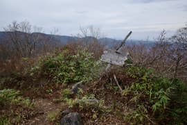 下岳から先は樹林に覆われた尾根道となる。20分程進んだところの小ピークに「下岳頂上1,509m」の新しい山名標があるが、地理院地図の下岳とは位置が違っている🤔