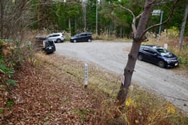 合流地点のT字路が下岳登山口で、既に駐車が2台あり、老夫婦のハイカーさん2組が出発の身支度中。私の車が林道富貴沢線から出て来たのに驚いて、良い道で通れるんですか、と尋ねられる。少し草が被さるけれど、全線舗装道で良い道ですよ、と教えて差し上げる。未舗装の林道七ヶ岳線で遠回りして来たようで、帰りは私が来た道にする、とのこと。ちなみに、私は事前に登山口ナビで調べて、今回の経路を知ったのであった。