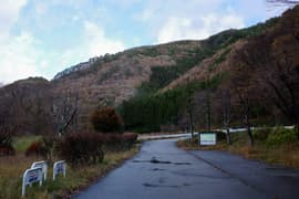 沢の左岸を辿ると、山腹の高いところのトラバース道となる。杉林に入り、大きく切り返して下ると、今朝、通ったR121沿いの登山口に着く。入口の様子からは思いも付かない険しい登山道であった。ここから駐車地の独鈷沢ふれあい公園は目と鼻の先である。