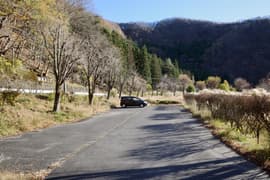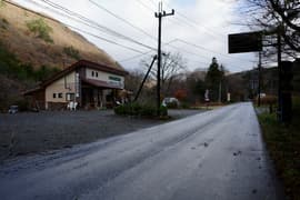 桐生を早朝、車で出発。R122、日光市街を経由し、R121(会津西街道)を北上して、五十里湖の上流にある「独鈷沢ふれあい公園」の駐車場に車を置く。他の車はなし。周囲の山はすっかり冬枯れ色だ。雨上がりで路面はしっとり濡れ、上空の雲の流れが速い。寒いので今日の服装は冬仕様で、厚手の長袖シャツとトレックパンツを着て来ている。