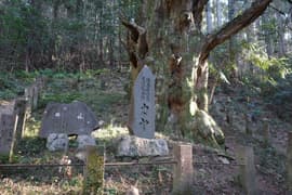 説明板によると、このヒノキは幹周り3.72m。前を通る道は檥(ぶな)峠への旧道を拡幅したもので、かつては峠越えで吾野との交流が盛んだった、とのこと。砥石のヒノキのすぐ先には「おそよの墓」という看板とともに、墓碑と「文化四卯(1807)年 施主村中」の銘のある地蔵菩薩がある。峠越えで横死した女性の墓だろうか。