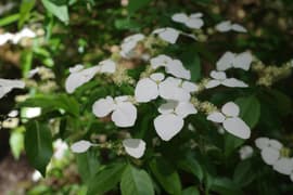 登山道に入り、白谷沢の左岸台地の植林地を登る。林内には、少し薬っぽいが、良い匂いが漂う。ガクウツギの花が満開で、どうもこの花の香りらしい。