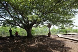 時間はちょっと早いが、ベンチに腰掛けて昼食休憩とし、カップヌードル担担を食べる。日が高くなり、日向に居ると暑いくらいだ。