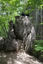 昼食後、下山にかかり、権次入峠を経て岩茸石まで往路を戻る。岩茸石の天辺に登って休憩中のハイカーさんも居る。反対側から簡単に登れるが、天辺は結構高いので、見ているだけでヒヤヒヤする。