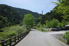白谷沢に架かる立派な鋼桁橋(白谷橋)を渡ると、橋の袂に登山口がある。登山口から車道を少し進んだところにも10台分程の駐車スペースがあるが、既にほぼ満車。