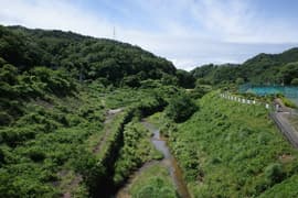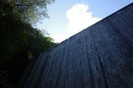 さらに渡渉箇所があり、飛び石伝いに渡るのにバランスを要す。巨大な摩耶第二堰堤を越え、鉄階段を下る途中でマムシっぽい小さな蛇を見て、ギョッとする。下から見上げる堰堤は首が痛くなるほど高い。険しい山地に隣り合う都市を土砂災害から守るには、やはりこれほど大規模な土木設備が必要になるんだな。