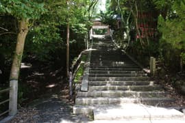 このすぐ先で「大龍寺0.1km」の道標があり、左に石段道が分かれる。すぐ近くだから、大龍寺に立ち寄ってみよう。寺なのに何故か赤鳥居を潜って境内に入ると毘沙門天を本尊とする御堂が建つ。その右隣の御堂が大龍寺の奥の院で太子堂とのこと。