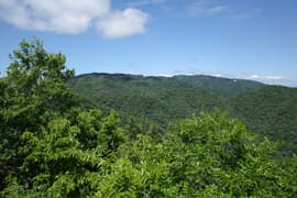 さらに尾根を緩く登って二つめの送電鉄塔の基部を潜る。樹林に覆われて展望はないが、振り返って木の切れ間から菊水山を眺める。前回、最後に踏んだピークだ。あの山の登りは暑くてきつく、頂上では東屋の日陰にひっくり返って休んだなあ、と記憶が蘇る。今日は、尾根上では風が良く吹き抜けて涼しく、至極快適だ。
