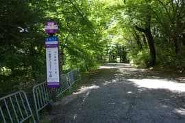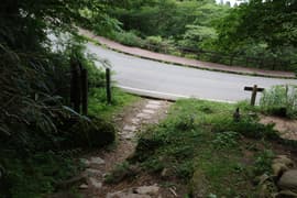 縦走路に戻り、アゴニー(agony)坂と呼ばれる急坂を下ると、再び車道(奥摩耶ドライブウェイ)に合流する。平日のせいか、車の通りはほとんどない。