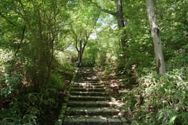 太子堂正面の参道を下り、白亜の会館の脇を通ると石畳の参道となる。道に沿って西国三十三観音の石仏が建ち並ぶ。仁王門を潜ると道端に「毎日登山壱萬回塔」という石碑があり、達成者3〜40名の氏名が刻まれている。一万回はすごいなあ。毎日欠かさず登っても約27年かかる(そう言えば金剛山でも登山回数ランキングを見た。トップが15000回を超えていて喫驚)。参道石段を下り、右から六甲全縦の山道を合わせる。