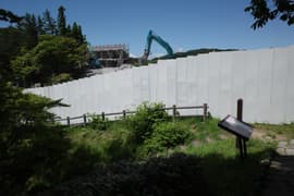 歩道に戻って先に進むとドンガラと工事の音が響き、土埃が舞って何事かと思う。オテル・ド・摩耶(旧神戸摩耶ロッジ)という宿があったが、休業して解体中とのこと。
