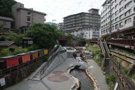 やがてロープウェイの山麓駅に着き、家族連れや外国人観光客がちらほら居る。車道をテクテク歩いて、高級そうなホテルの間を歩く。温泉街に入ると金の湯辺りから内外の観光客がどっと増え、活況を呈している。インバウンド凄いなあ。