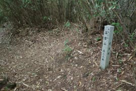 落葉山の頂上は本堂のすぐ裏手で、竹藪の切り開き道の途中に「有馬三山 落葉山 五三三米」と刻まれた御影石製の山名標柱が建ち、その脇の竹藪の間に三角点標石がある。