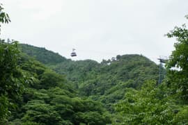 あとは未舗装の車道を辿る。左手上空を眺めるとロープウェイの搬器が移動中。乗っていれば、眺めが良いだろうな。ここには紅葉の時期にも来てみたいものである。