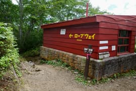 ようやく天神平が見えてきて、スキー場ゲレンデの草原に入る。天神平は家族連れ等の観光客で大賑わい。天神平に上がるリフトも乗客が多い。リフト乗り場の下に登山者向け靴洗い場の水道があり、蛇口から出る水で顔を洗い、汗を拭ってロープウェイ駅に向かう。