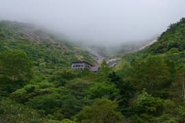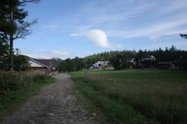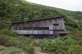 渓流を渡ると草茂るスキー場の一角に出て、程なくスキー場駐車場に帰り着く。車にザックを置き、登山靴を履き替え、着替えセットを持って、日帰り入浴で奥岳の湯へゴー。歩いてすぐで便利。くろがね小屋の源泉を引湯して、掛け流している。頂上では寒い思いをしたから、湯船に浸かって暖まるのが大変気持ち良い。