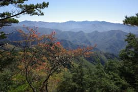 前御座山の頂上を越えれば、あとは下り一方だ。行きにあった霧氷は、既に跡形も無く消えている。岩稜が現れ、鎖を伝って慎重に下る。行きは雲海の向こうに奥秩父を眺めた地点でも、雲海が霧散して手前の御陵(おみはか)山辺りの稜線が見える。