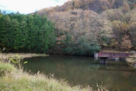 小腹が空いたのでシュークリームを一個食べた後、出発。自治会館の前で懸命に走る子供ランナーを見送って、新東登山口(登山道の付け替えにより、以前の東登山口と位置が変わった)に向かう。通りがかった民家の庭先に居た女性から、今日は天気がいいですね、と声を掛けられて、挨拶を返す。民家が尽き、「林道小彦谷線」の古い看板を過ぎて、刈り入れが終わった田圃が広がる小さな谷地に入る。晩秋の里山の雰囲気が好ましい。谷地の奥には溜池があり、その脇を通ると新東登山口の道標が立つ。