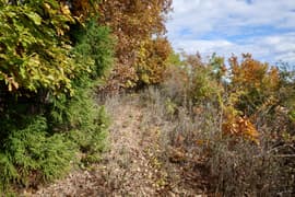 天池山の先で登山道は右に折れ、平坦な尾根を辿る。右側の樹林が途切れた箇所があり、梢越しに関東平野が見える。緩く左に折れ、なだらかな尾根を小さく上下して進む。途中で、二十丁山からの尾根を右から合わせる。どこが合流地点かは定かでないが、何となく覚えのある尾根道となる。小ピークを越え、木の間に湯殿山を眺めながら急坂を下る。
