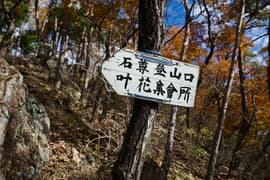 ザレた急坂の途中に「←石尊山登山口 叶花集會所」の道標があり、右に微かな踏み跡が分かれて下っている。こんな道があるとは知らなかった。前回、ここを登ったときは道標に気づいていない。この道にもちょっと興味を惹かれる。
