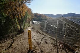 次の送電鉄塔の基部を潜り、伐採された尾根を進むと、右斜面一面に広がる太陽光発電所が現れる。前回(2007年)歩いた時にはなかったもので、歳月の移り変わりを感じる。程なく、経持坂(現地の標識では慶路坂)の標識のある峠に着く。左に下るとすぐに彦谷地区の集落に出て、彦谷自治会館まではほんの僅かの距離だ。3時間弱のごく軽い山歩きだが、岩場もあって低山にしては険しく、いくつか新しい発見もあって、存外に楽しめた。