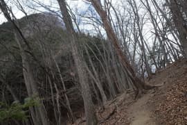 この先もなだらかな尾根道がだらだらと続くが、急坂に差し掛かると岩場が現れ、ちょっと変化がある。ここで先行していたソロハイカーさんに追いつき、先に行かせて貰う。