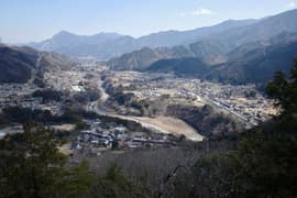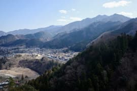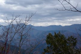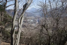 周囲の展望は、木立で一部の方向が遮られるが、北には両神山や二子山、毘沙門山を遠望し、南には荒川の深い谷を隔てて、雲取山や大洞山(飛龍山)、和名倉山(白石山)などの奥秩父の山並みが薄らと冠雪して眺められる。