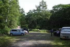 林道終点の駐車場には10台程の車があり、出発しようとしているハイカーさんもちらほら。既に標高1600mの高地なので、車外に出るとヒンヤリと涼しく、猛暑が続く桐生とは別天地だ。準備を整えて出発。左に的岩経由の登山道を分け、右の花童子の宮跡経由の登山道に入る。なお、左の登山道を少し入った所に簡易WCがある。