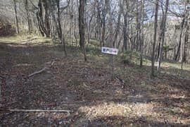 やがて、広く平坦な鞍部に出て、丈の低い笹原が現れる。少し先に「安戸山→」の道標があり、廃林道から右に分岐して笹原の中の踏み跡を辿る。この辺りから奥山の雰囲気が出てくる。