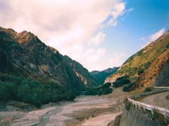 間藤から三川合流までは、既に馴染みになった道。三川ダムから先は一般車両通行止となっているが、奥のゲートまでは入れるようだ。ジャンダルムにはクライマーが7〜8人取り付いている。松木川から中倉山への斜面は、標高差800mにわたって岩が露出した山肌で、凄まじい大岩壁が続く。右岸も崩壊が激しく、落石が怖い。大岩壁を割って流れ落ちるウメコバ沢も険しくて凄い。